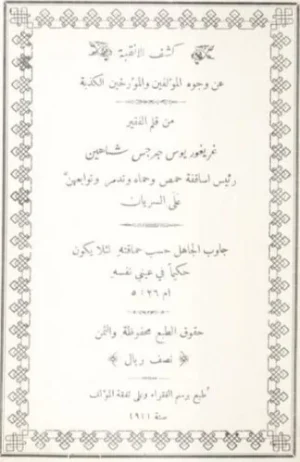 بقلم الياس حنا عبد السرياني الأرثوذكسي الموصلي – أي نشرة محاماة دينية مطبعة بيت المقدس القدس سنة 1925